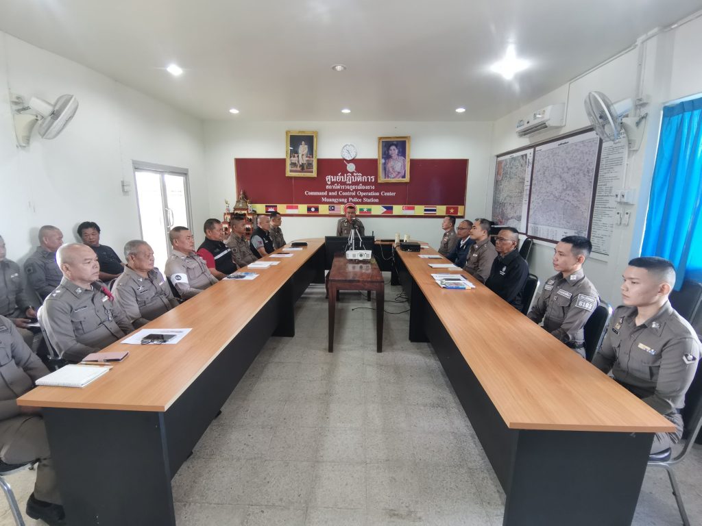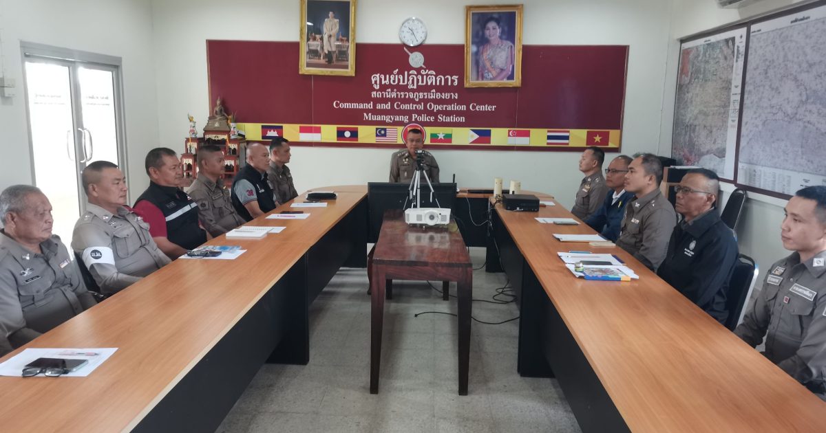 พ.ต.ท.วรวิทย์ วิจิตรจริยารอง ผกก.ป.สภ.เมืองยาง,พ.ต.ท.แผน สวาสดิ์นา รอง ผกก.สส.สภ.เมืองยาง,พ.ต.ท.ชานุ โชคสืบค้า สว.สส.ฯ,พ.ต.ท.ดาวรุ่ง เปรมใจ สว.อก.ฯ พ.ต.ต.ขัตติยะ เขียวอุตสา สวป.ฯ ได้ประชุมประจำเดือนข้าราชการตำรวจ สภ.เมืองยาง ดังนี้