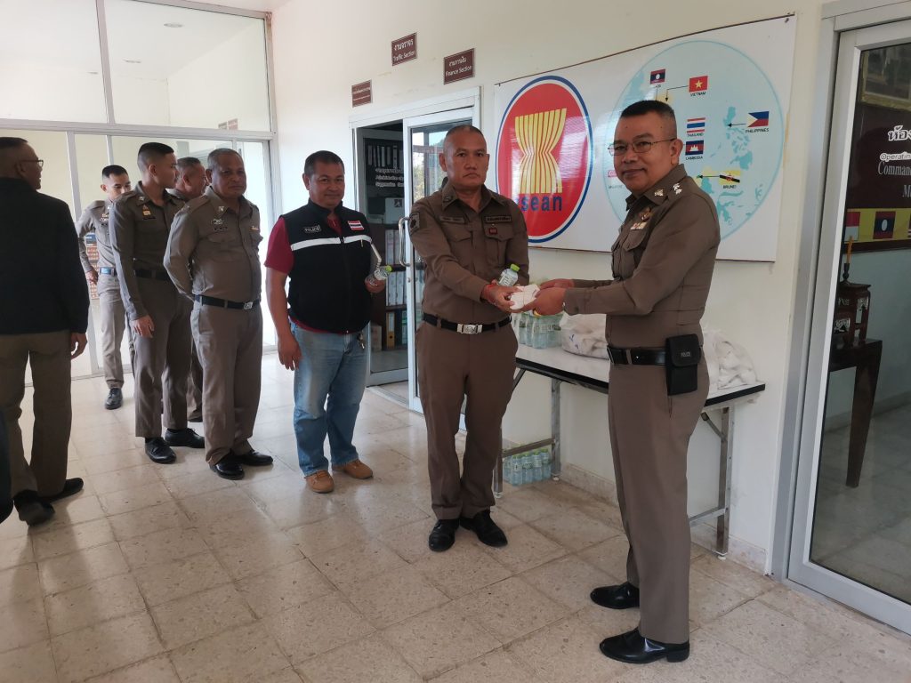 หลังการประชุมได้มอบอาหารกลางวันและน้ำดื่มแก่ข้าราชการตำรวจ