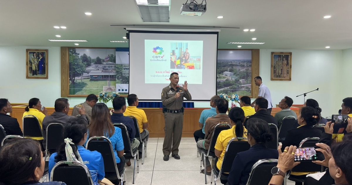 พ.ต.ท.วรวิทย์ วิจิตรจริยา รอง ผกก.ป.สภ.เมืองยาง เป็นวิทยากรสถานการณ์ยาเสพติดอำเภอเมืองยางเเละปัญหายาเสพติดในชุมชน
