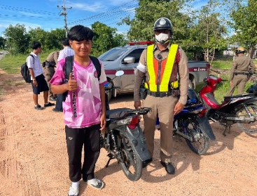 ร้อยเวร 20 พร้อมสายตรวจจราจร ว.4 ตรวจยึดรถไม่ติดแผ่นป้ายทะเบียน และท่อรถเสียงดังเกินกว่าที่กฎหมายกำหนด ที่ถนน ขุ่นละคร-บุ่งเบา ต.เมืองยาง อ.เมืองยาง จว.นครราชสีมา