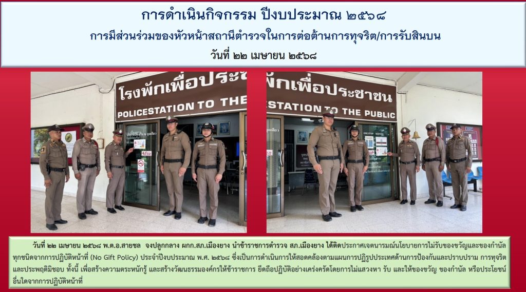 O18 ประกาศนโยบายต่อต้านการรับสินบน(Anti-Bribery Policy) และนโยบายไม่รับของขวัญและของกำนัลทุกชนิด (์No Gift Policy)จากการปฏิบัติหน้าที่